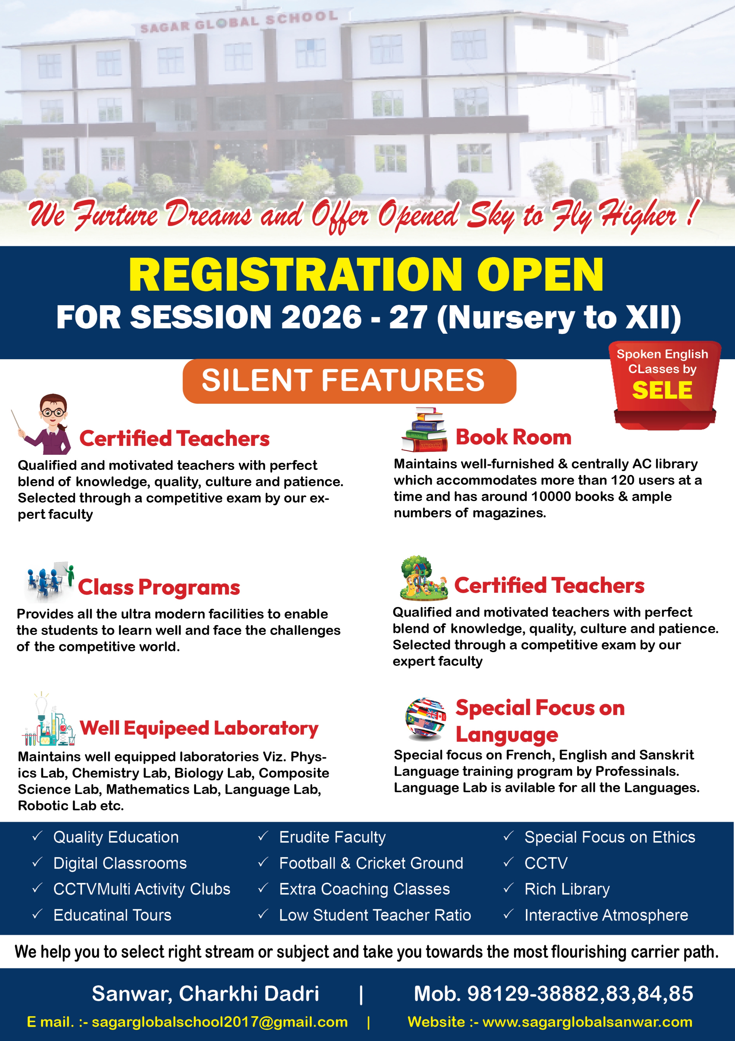 It gives me immense pleasure to invite students from Class 3rd to 10th to participate in the 6th Sagar Global Talent Search Exam (SGTSE). At SGS, we believe in providing the right platform for your child's bright future, and this exam is the first step towards academic excellence.
